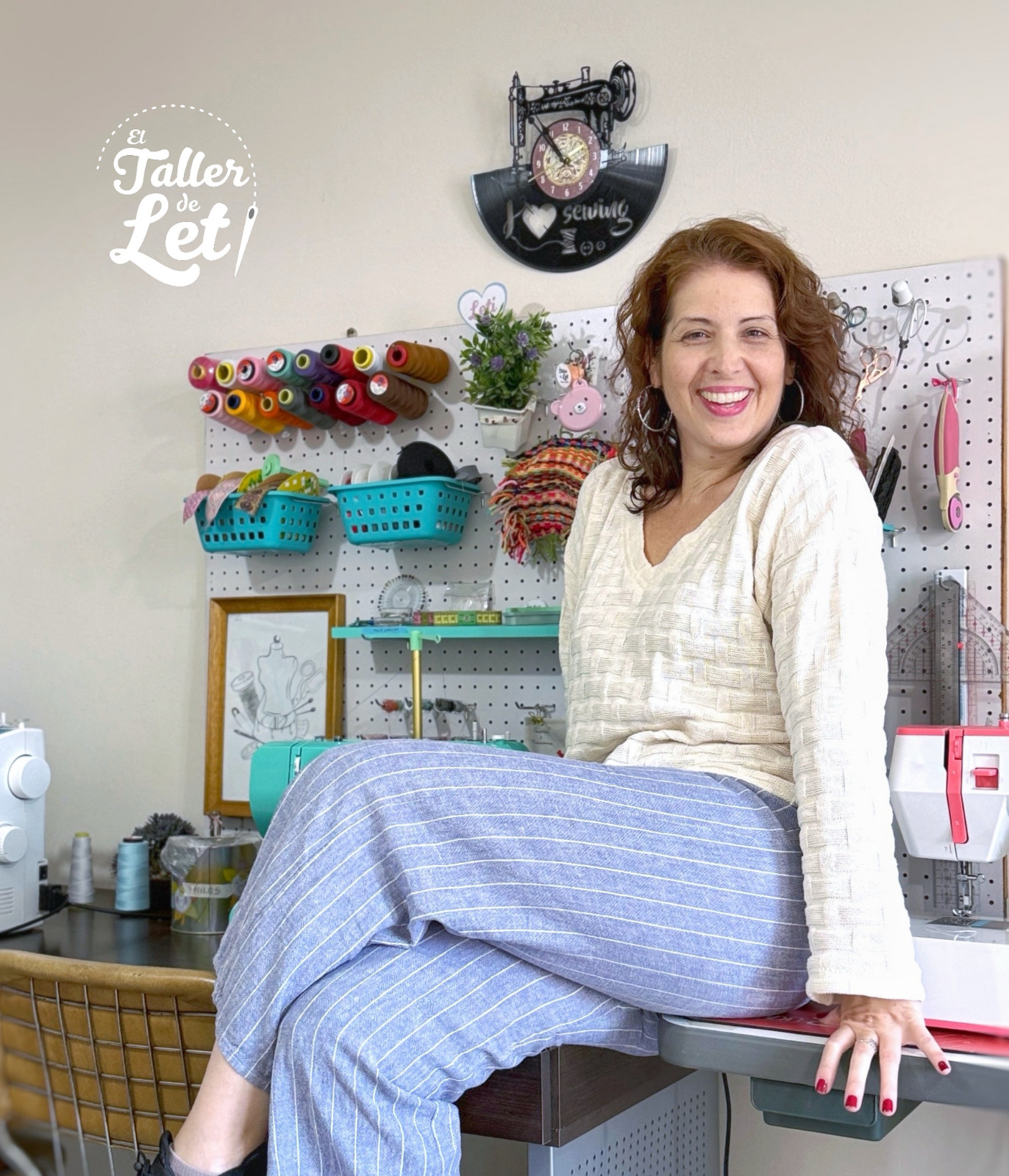 Soy Let, diseñadora y modista. En mi Taller hace 8 años que enseño a coser, y es mi lugar en el mundo: Un espacio creativo donde busco disminuir la velocidad de la vida actual, para poder encontrarnos con el oficio, lo no seriado, lo hecho a mano.